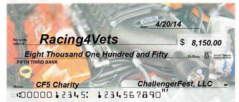 Once the awards for the car show and racing classes were handed out, and everyone was fat and happy from the great eats, we transitioned in to our charity auction. Several vendors stepped up to offer items to be auctioned with 100% of the proceeds going directly to our official event charity Racing4Vets. I vetted this charity out last year and these guys are the real deal. They sent four of their members to join us and they brought their racing carts to show off to everyone. They are just a great bunch of guys and this charity puts 100% of it's proceeds back in to helping the service wounded veterans they aim to assist. They do cart programs, business training, job placement, and even housing, to help these vets not only have purpose, but restore their happiness, drive, and will to live. I had a long phone call with their President, Lawrence, who is extremely passionate about their mission, and he shared some things with me that let me know they are certainly the charity I need to sponsor each year. The track owner even let them take their carts down the quarter mile for a couple of passes and I saw one of them hit almost 62MPH in the traps. I drove one of those carts around the host hotel parking lot and they are a blast. If you're reading this and didn't get a chance to be involved with this charity during ChallengerFest 5, or even if you did and want to do more, please consider sending them a donation to help them out. It is a tax deductible donation.