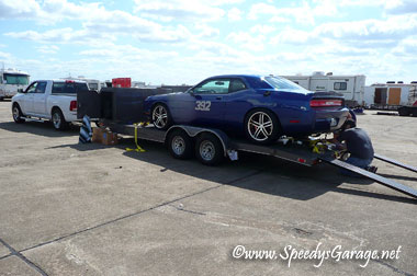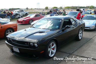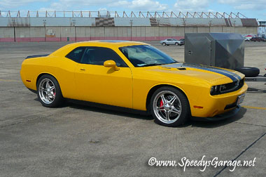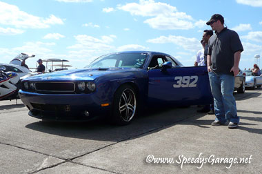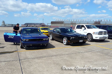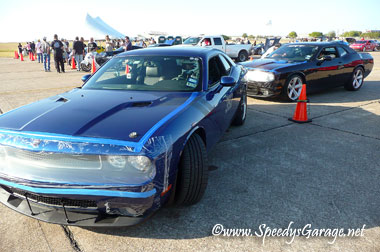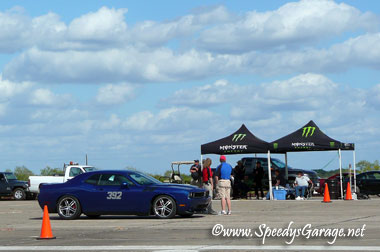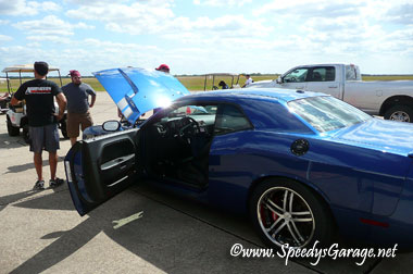 I flew back to TX to help pit crew my buddy's Arrington Powered R/T Challenger at the October 2011 Texas Mile event. He has gone a bit farther with his hot rode than I have, swapping out his Arrington 5.7 based 6.0 engine for a An Arrington 6.1 based 6.4. He had a goal of 180MPH, and ended up running a best of 186MPH hitting the speed limiter! DOH, our tuner corrected that little issue and now he's shooting for 190MH at the March 2012 TX Mile event. He currently holds the record for a Challenger in the standing mile.