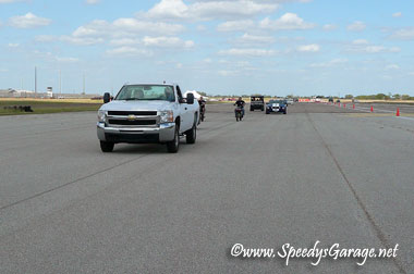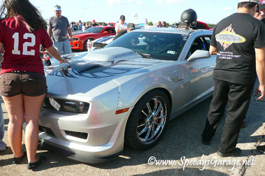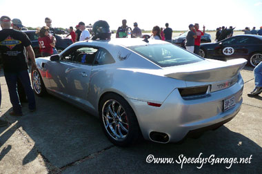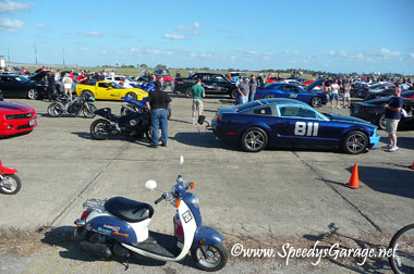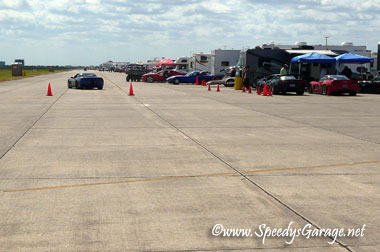 This event is run on an air strip. You line up your car and from a dead stop accelerate for exactly one mile. Your speed at that one mile mark is recorded, so this event is all about horsepower. There was all manner of cars and bikes at the event from Lambos to Ferraris to Hayabusas to custom hot rods. The fast cars of the day were hopped up Ford GT supercars, Late Model Racecraft's Camaro, and NASCAR style race cars. The latter were running 240MPH - 245MPH!