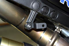 You'll want to thoroughly test the brake system before taking the bike out in traffic. Give the brakes some good hard presses while parked and check for leaks at all the connection points. Make sure the brake levers are firm and not spongy. If they still feel spongy you didn't get all of the air out of the system. Once you've done these two steps, take the bike to a safe controlled location and test the brake system in action. Make sure it reacts the way you would expect. If you want to remove the passenger foot pegs AND keep your exhaust heat shield cover in place you'll need to fabricate a small bracket as the heat shield cover mounts to a bracket that is attached to the right passenger foot peg. This bracket is pretty easy to fabricate and if done properly will look like a stock piece once complete. I used some 1/2" x 1/16" (12.7mm x 1.6mm) aluminum bar stock. Simply cut a 2.25" (57mm) piece and bend it to fit the rear exhaust bracket and drill a hole in each end to match up with the bracket and the heat shield cover. I then used a black 30mm long 5mm button head hex bolt to attach the fabbed bracket to the bike. I also used a stainless nut with nylon lock washer to secure it. Finally just use the stock 5mm button head hex bolt along with another stainless steel nut with nylon lock washer to secure the heat shield cover to the other end of the fabbed bracket. I've got an aftermarket carbon fiber heat shield in place of the stock aluminum heat shield and cover, but this should work for the stock one as well. I also used some GM 45490 body plugs to fill the holes in the sub frame where the passenger foot peg bolts went. These plugs are available at just about any auto parts store. This finished the bike off and made it look totally stock.