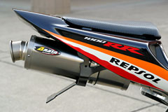 Honda CBR 1000RR Jardine Fender Eliminator July 2005 The tail of the 1000RR looks pretty bulky as it comes stock from Honda. I searched around looking for a nice fender eliminator that would tidy up the tail area, be simple to install, and was durable. I looked at fabricating my own, but in order to get what I wanted it was cheaper to purchase a pre-made unit. I researched several models and found the Jardine Fender Eliminator fit the bill. I feel the Jardine Fender Eliminator is a little over priced for what it is, but aren't most of the parts we buy for these bikes?