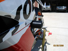 Frame sliders are cheap, and easy to install. I highly recommend you get a set if you haven't already. They won't save your bike from every possible scenario, but they will definitely help, and could mean the difference in riding the bike home, or waiting for a tow truck. Using 2x4 piece of wood, I took a look at how the Shogun No Cut Frame Sliders would protect the bike, referencing how far the sliders protruded from the machine vs. how far various parts of the bike. Under a low speed drop, or the most common issue of dropping the bike in the driveway, it appears the only part that would take damage would be the tail section and even that would be slight. If you want the maximum amount of strength and protection, go with the sliders that require the fairing be cut, however these Shogun no cut sliders are a very good alternative and you don't have to cut on the bike to install them. |