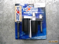 Frame sliders are cheap insurance. If you don't have a set I recommend you get some TODAY. Of course they won't save your bike from every possible scenario, however they will save it from most and could allow you to ride the bike home after an indecent rather than being stuck on the side of the road waiting for a tow truck. It's also a lot cheaper to replace a $20 frame slider puck than it is to replace $500 - $800 worth of plastics. There are a couple of different types of frame sliders available for the 1000RR. All bolt to one of the engine retaining bolts, but some require cutting a hole in the plastics to allow the slider to pass through while others do not require cutting the plastic. The sliders that require a hole to be cut in the plastics are the most effective sliders as they place all the force on the slider puck/base/bolt should you have an incident. The "no cut" sliders also bolt to an engine retaining bolt, but the base is machined so that it extends the slider puck past the plastics allowing you to install them without fairing modification. I decided to go this route as I did not particularly care to cut holes in my fairings, and I figured if I got into a bad enough incident that this type of slider didn't do the job I would have bigger problems. After researching several types of "no cut" frame sliders I decided to go with the Shogun offering. I had read good reviews of these sliders, and they bolted to the rear engine retaining bolts that allowed them to protrude from the side of the fairings where they looked the most at home. The Shogun sliders are a 4 part unit consisting of the slider puck, the slider base with extended arm, the slider puck bolt that attaches the puck to the base, and the main bolt that attaches the entire unit to the bike replacing one of the engine retaining bolts. The Shogun base that extends the slider puck past the plastics is only about 2 inches (50mm) in length and it's 1/2 inch thick (12mm) and made of aluminum. The puck also has an aluminum sleeve for added strength. I think they will be strong enough to work in most instances. The Shogun No Cut Frame Slider part number for the 1000RR is 750-3809.