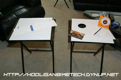 Using some tips I learned from watching Chip Foose on Overhaulin', I made preliminary sketches to decide how best to paint the graphics on the pc case. I used an angle finder to determine the angle and a tape measure to determine the ratio of the color stripes on the Repsol Edition CBR1000RR fairings. I emulated this angle and ratio on the sketches. After a few drafts I decided it would look best to have the top and front dark metallic blue, like the bike, and the sides orange, white, and red, again just like the bike. This is supposed to be a replica after all.