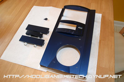 Once I had the blue parts painted, I followed up with three coats of clear following the cans instructions of doing two light coats followed by one medium coat allowing 10 minutes in between. The clear really brought out the color and metal flake in the blue to make it look very nice. I set the painted bezels aside and began to work on the sides of the case.