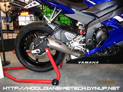 This "GP" style exhaust seemed to be the new thing at the show. This Micron unit is on a 2006 R6. |
