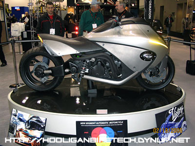 This was a Victory concept bike on display at the show called the Victory Vision 800. It's got an automatic transmission with no clutch or foot lever. |
