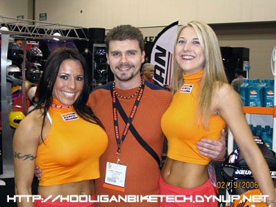 I had the opportunity to attend a closed to the public dealer show this year. These shows are a HUGE gathering for manufacturers and distributors to meet with dealers to showcase new products for the upcoming year and build business relationships. My local dealer salesman, professional racer, and good friend Matt McCord and I braved the snowy weather in my trusty 4WD 4Runner and made the 5 hour drive from Nashville, TN to Indianapolis, IN. We only hit a few spots of snow through KY, but once in Indianapolis the temperatures were bitter cold at 2 degrees F. Once at the show, we browsed the complex for 8 hours and still couldn't see everything. You just can't imagine how many cool products there are to see and learn about from the various manufacturers. Between all the cool products on display and the very attractive umbrella girls, it quickly becomes a case of sensory overload for a motorcycle enthusiast. Without further ado, here are some photographs I took while at the show.