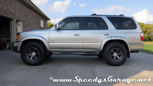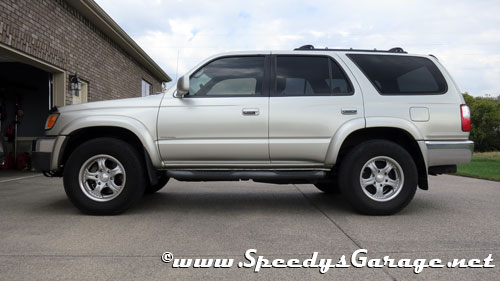 After installing the new tire and wheels I had a very slight rub at the back of the driver side inner fender. Nothing on the passenger side though. I guess build tollerance or something? Anyway, the largerrubber upset the body lines in my eyes and I decided a two inch lift was in order. I've had trucks in the past that I put four or even six inch lifts on and honestly it was just too much for what I used the trucks for. I wanted to be careful and ENHANCE the 4Runner not ruin it with too much lift. I took a lot of measurements using a jack under the frame to determine that two inches was the max I wanted to go. Keeping the lift modest at two inches also meant I didn't need to worry about adjustable rear panhard bars or front diff drop spacers.