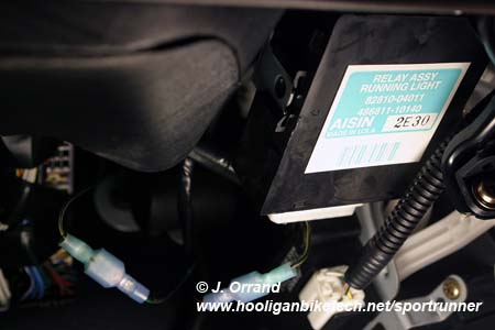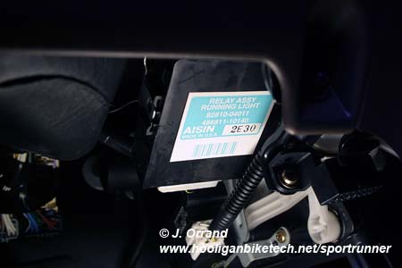 You'll notice in the picture of the DRL relay assembly connector above that I have electrical tape on the white with black stripe wire at pin 2. That is for the Fog Light Mod.