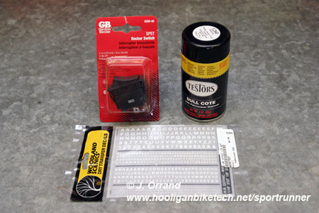 If you want to go an extra step and label the switch for a factory appearance, tape up the outer trim with some painter's tape and lightly sand the switch with some 220 grit sand paper to knock the sheen off. Once sanded, wipe the switch down with some paint prep. Next use a tooth pick and apply the appropriate dry transfer letters. These letters aren't the easiest things to apply to the switch as getting them even is quite a challenge so you may want to buy two packs of letters for some insurance. Once the letters are applied, spray 2-3 light coats of the clear lacquer on the switch. This will seal the letters and keep them from getting rubbed off with use. Be sure to use clear coat designed for plastic or it'll turn cloudy and peel. I learned that the hard way