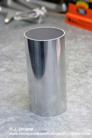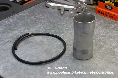 That's all there is to it. If you have this modification done as well as the deckplate, expect quite a bit more intake noise with moderate to heavy throttle application. I ended up liking the results of this modification, so I ordered a 2 3/4" diameter polished aluminum tube to replace the exhaust pipe I used initially. It's much lighter, will dissipate heat more quickly, and looks better. I ordered this in an 18" length from a performance shop and had them cut it down to 5 5/8".
