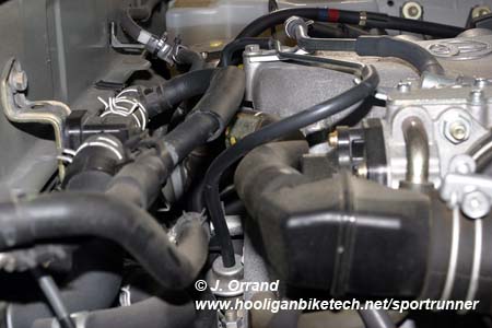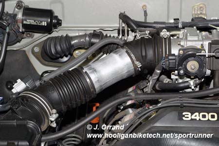 The install only takes about 10 minutes. All you do is remove the stock intake silencer between the air box and the throttle body. There are just two clamps holding it in place. Unplug the vacuum line running from the intake silencer to the metal tube running under the intake plenum. You won't be reusing this vacuum line.