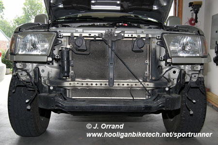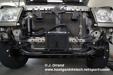 I fired up Project SportRunner and tested for leaks then took it for a test drive to get everything up to operating temperature. I then added fluid as necessary and re-installed the bumper and grill. Be sure to check the fluid with the vehicle at operating temperature and with the engine running.