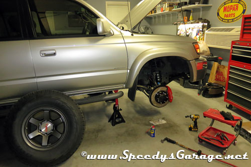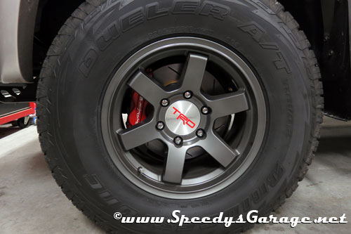 The 4Runner was approaching 100,000 miles and while surprisingly the brake pads still had plenty of life left, the rotors were warped and giving a good amount of shudder. Lookign at options, I decided it was a good time to not only replace the brakes with new parts, but do an upgrade at the same time. Tundra brake rotors and calieprs from 2000 - 2006 Tundra models will direct swap on to 3rd generation 4Runners with nothing more than some trimming of the dust shield.