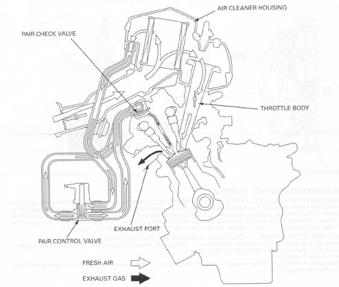 The PAIR system is located under the air box. To get to the system you'll need to remove the seat (2 x 5mm button head hex bolts), remove the tank side plates (2 x 5mm button head hex bolts), and remove the tank cover (4 x 5mm button head hex bolts). Disconnect the fuel tank drain tube and remove the 2 x 5mm tank bolts and lean the tank up and support it with a block of wood or other object. I recommend doing this while the bike has about half a tank of fuel as it will make the tank lighter. Remember to disconnect the fuel tank drain tube, it's easy to forget.