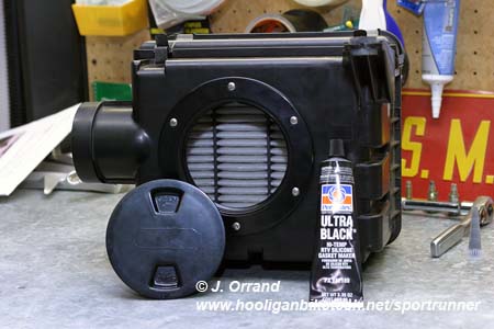 Once the box is all cleaned out, apply a 1/4" bead of the sensor safe silicone to the deck plate and insert it into the box following up with the screws. There is no need to drill pilot holes for the screws, just let them make their own holes for a tighter seal. Let the silicone dry over night before putting the air box back in the vehicle to insure the fumes from the silicone do not cause problems to the MAF sensor.