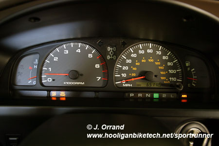 You can see my corrugated covered switch wires running off the factory harness and going through the firewall in the picture above. Now when I flip the dash mounted switch my VSC OFF, VSC TRAC, and ABS lights illuminate letting me know my switch is working properly. I can now spin the tires at will. To turn the ABS, VSC, and TRAC systems back on, I shut the truck completely off, turn my dash mounted switch on to enable the systems, and restart the truck.